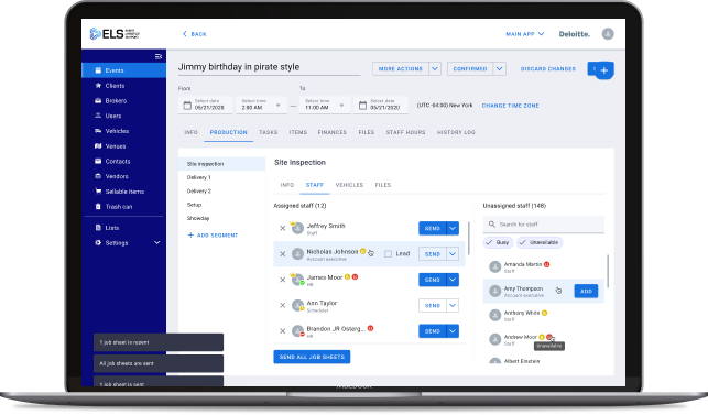 Together with the client, NerdySoft team has designed and developed from scratch an easy-to-use, but powerful Event Management platform and CRM system for companies engaged in the events industry to better organize the process of event logistics work of a large amount of staff with different levels of access.